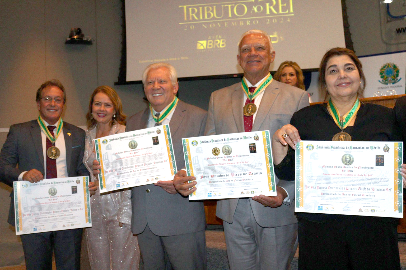 Brasília (DF), 19 de novembro de 2024 – O presidente da AAAPV (Agência de Autorregulamentação das Entidades de Autogestão de Planos de Proteção Contra Riscos Patrimoniais), Raul Canal, foi laureado hoje com a medalha “Rei Pelé”, concedida pela Academia Brasileira de Honrarias ao Mérito às personalidades do ano no futebol brasileiro. A premiação foi realizada durante um tributo ao jogador de futebol Edson Arantes do Nascimento, no auditório Senador Antônio Carlos Magalhães, no Senado Federal.